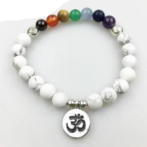 Bracelet « 7 Chakras et Sagesse » en Howlite Blanche