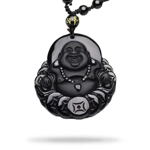Pendentif Bouddha Rieur avec Contour Couleur Argent