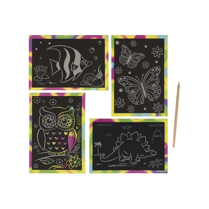 Au choix : poisson, dinosaure, chouette ou papillon qui apparaitront au grattage.