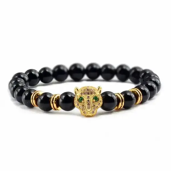 Ce Bracelet Bouddhiste avec Tête de Léopard est orné de pierres naturelles ayant une vertu spirituelle !