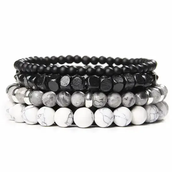 - Pierres : Onyx Noir, Howlite Blanc, Jaspe Gris
