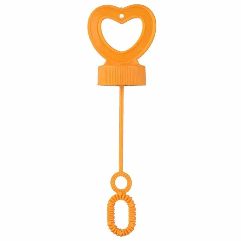 Tube en plastique qu’on ouvre avec fleur, coeur ou étoile pour souffler sur le liquide savonneux.