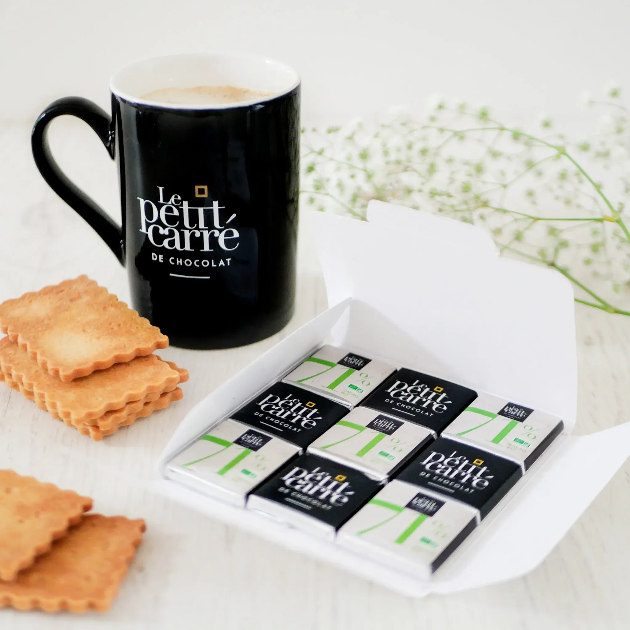 Carte composée de 9 carrés de chocolat Bio et Equitable de fabrication française.