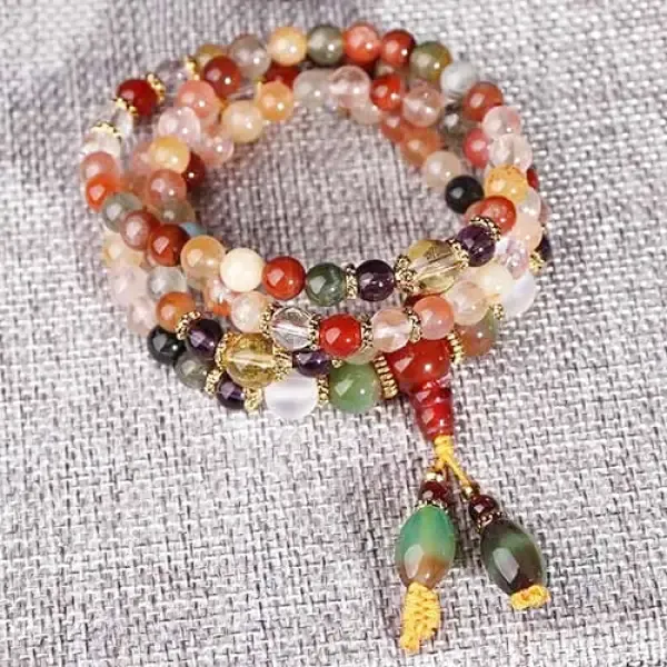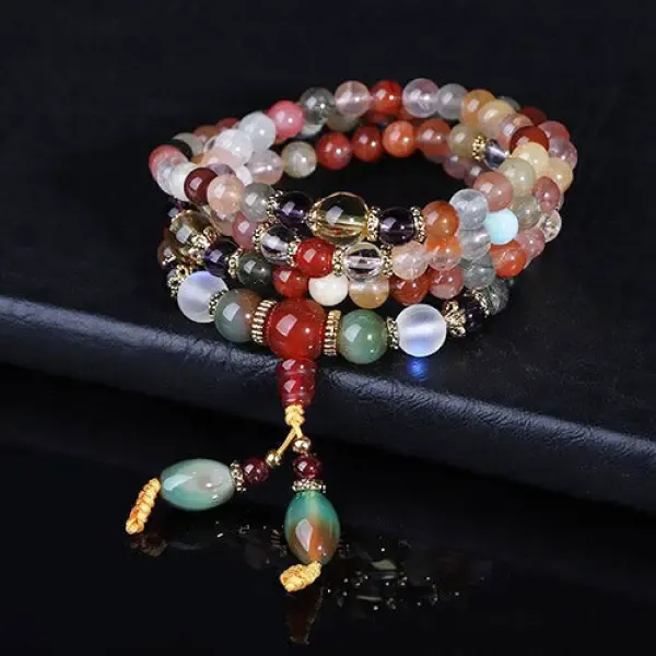 Offrez-vous ce splendide Chapelet Bouddhiste en pierres de Quartz multicolores pour enrichir votre collection de bijoux. Ce chapelet se distingue par ses nuances de couleurs vives, qui en font un véritable chef-d’œuvre visuel. Parfait pour être porté au quotidien, ce bijou peut également être utilisé lors de vos séances de méditation et de yoga pour vous accompagner dans votre pratique spirituelle.