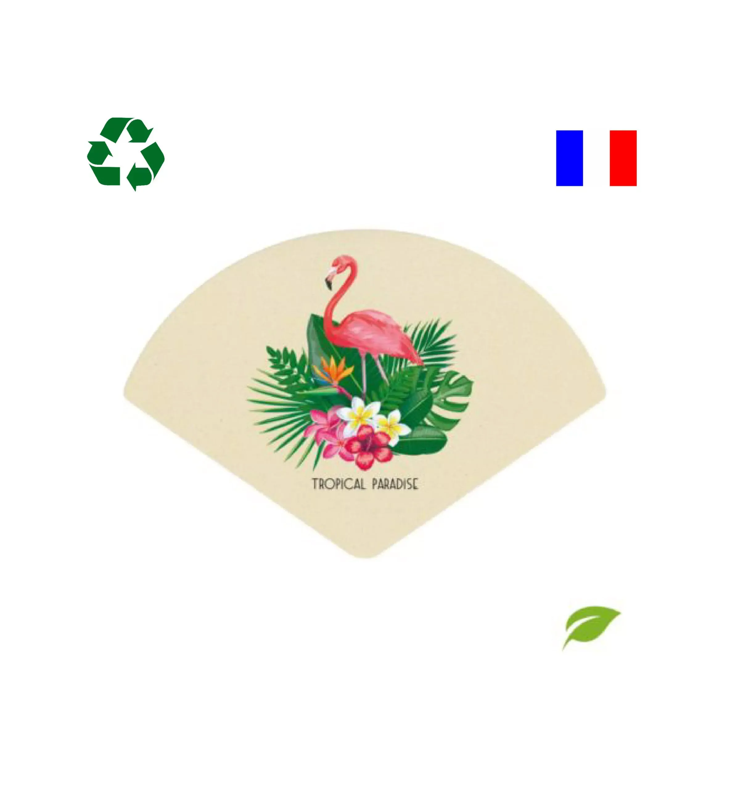 Éventail 100% en fibres de canne à sucre, 100% personnalisable, léger, résistant, recyclable, compostable.
