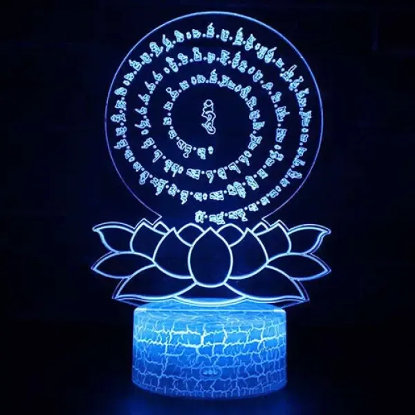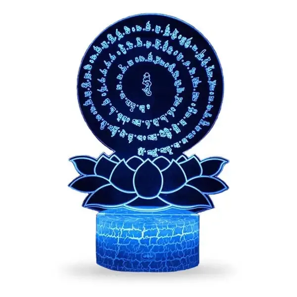 Inspirez-vous de la sagesse du bouddhisme en installant cette somptueuse Lotus LED Lampe dans votre intérieur. Représentant une fleur de lotus entourée d’un cercle de mantras bouddhistes, cette lampe symbolise la pureté de l’esprit et du cœur.