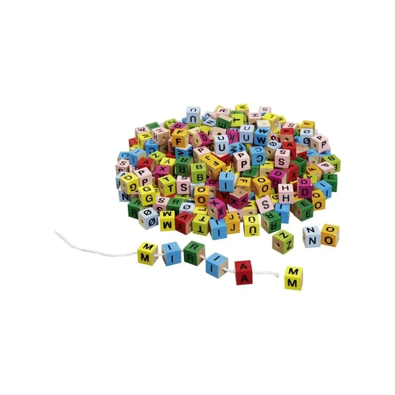 Sachet de 325 cubes lettres colorés et en bois, pour passer des heures à faire des bracelets et colliers. Enfiler des perles est une activité qui développe l’habilité et la patience de vos enfants.