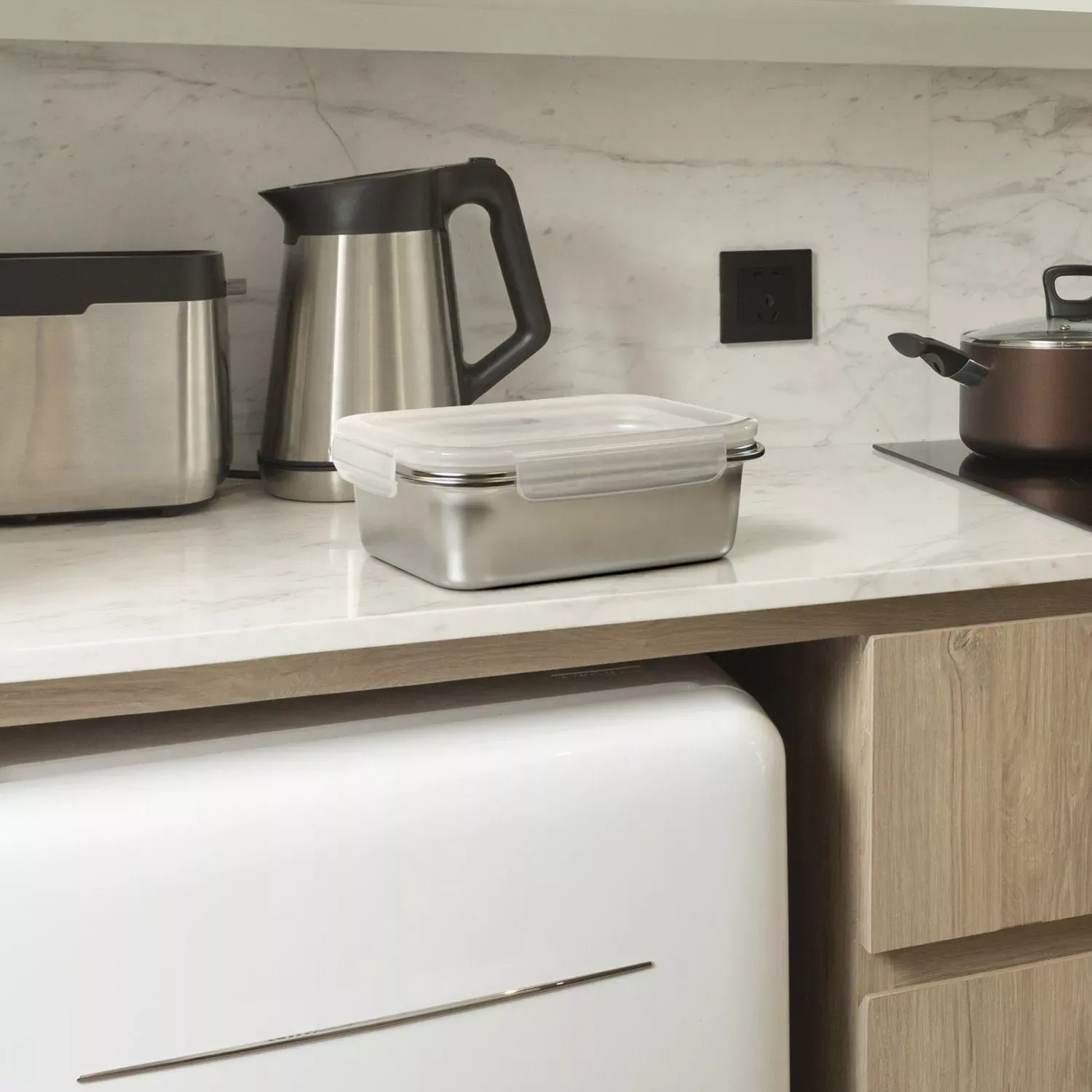 Lunchbox alu micro-ondable de 1300 ml en 100% acier inoxydable. Cette lunchbox alu micro-ondable comprend un couvercle en polypropylène, sans BPA. Avec son design épuré et moderne, elle vous permettra de faire réchauffer vos plats en toute sécurité.