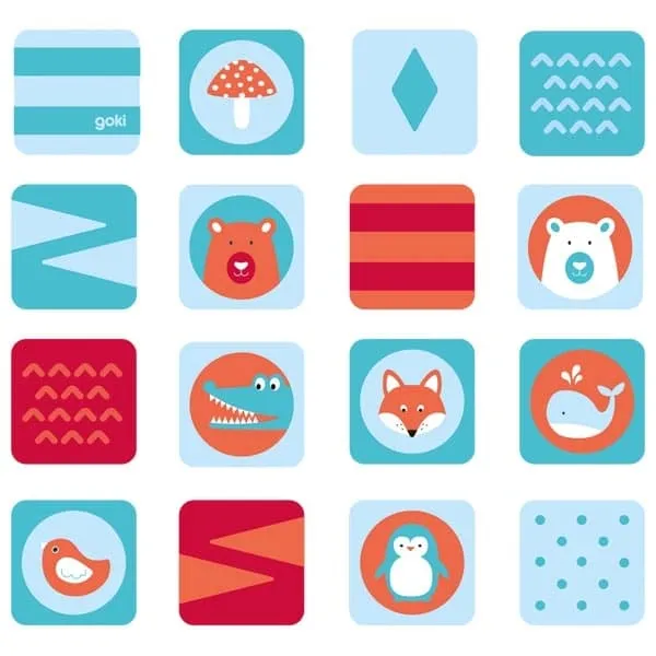 Pour le mémo on retourne les jetons en formant un carré ou rectangle. On retourne une carte et il faut trouver ou se rappeler où est la carte qui permettra de faire une paire. Un jeu qui développe concentration et mémoire.