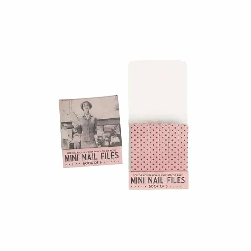 Présentées comme des allumettes 6 mini limes à ongles roses à pois. Packaging vintage aux dimensions parfaites pour se glisser dans tous les sacs à mains