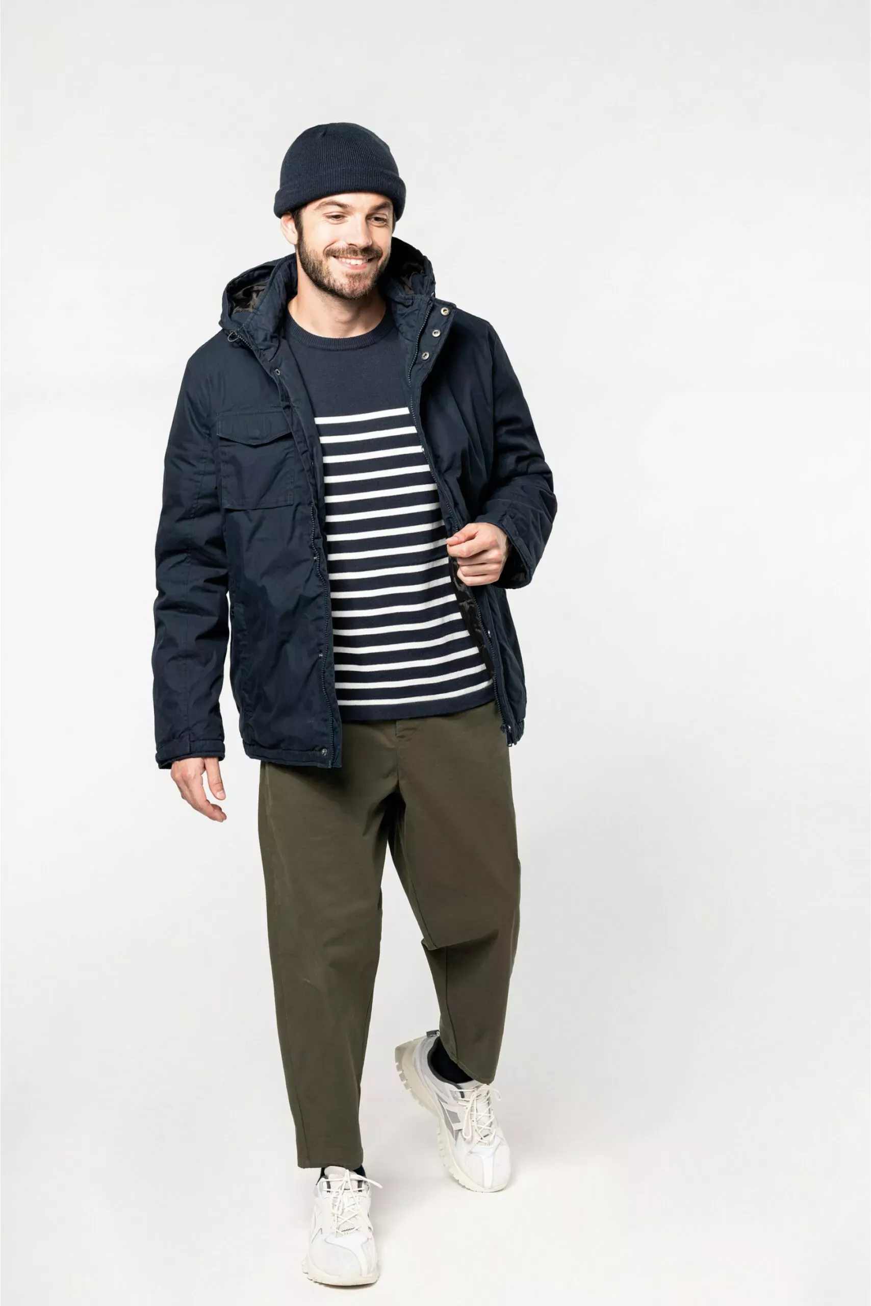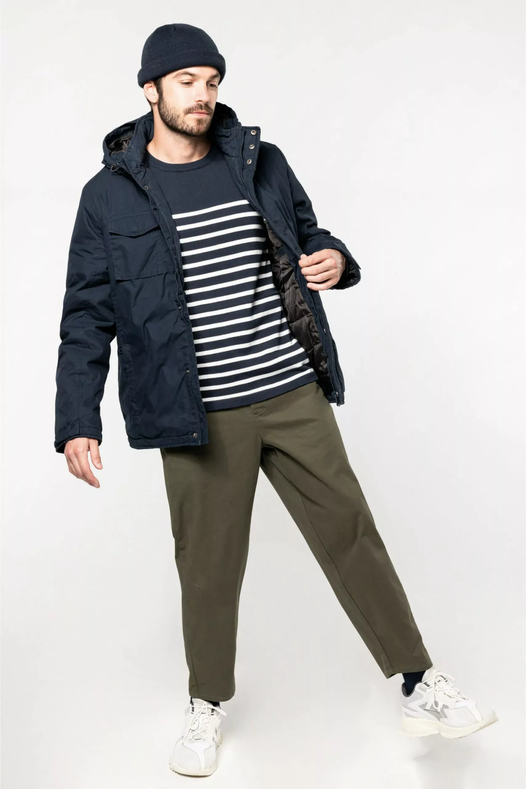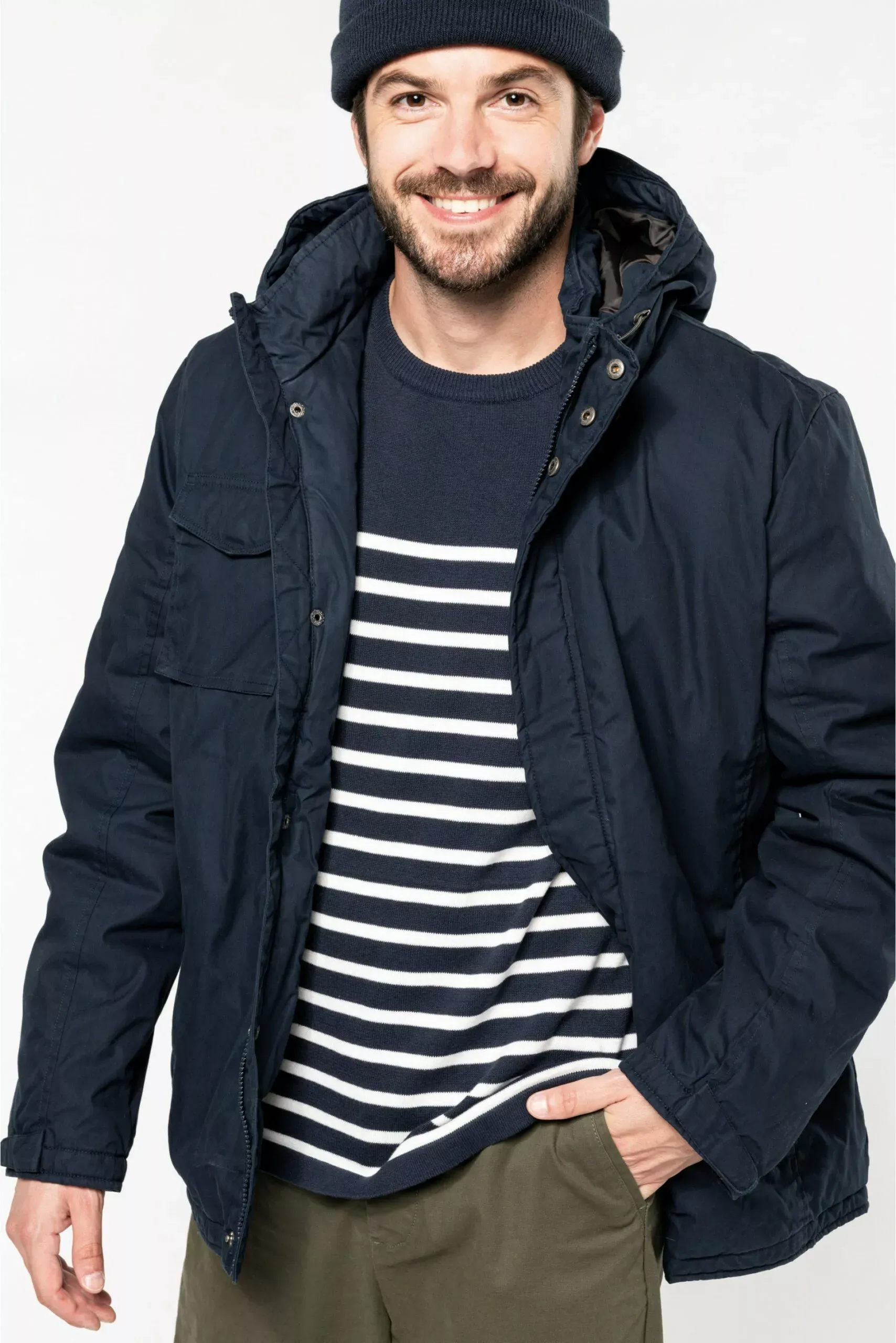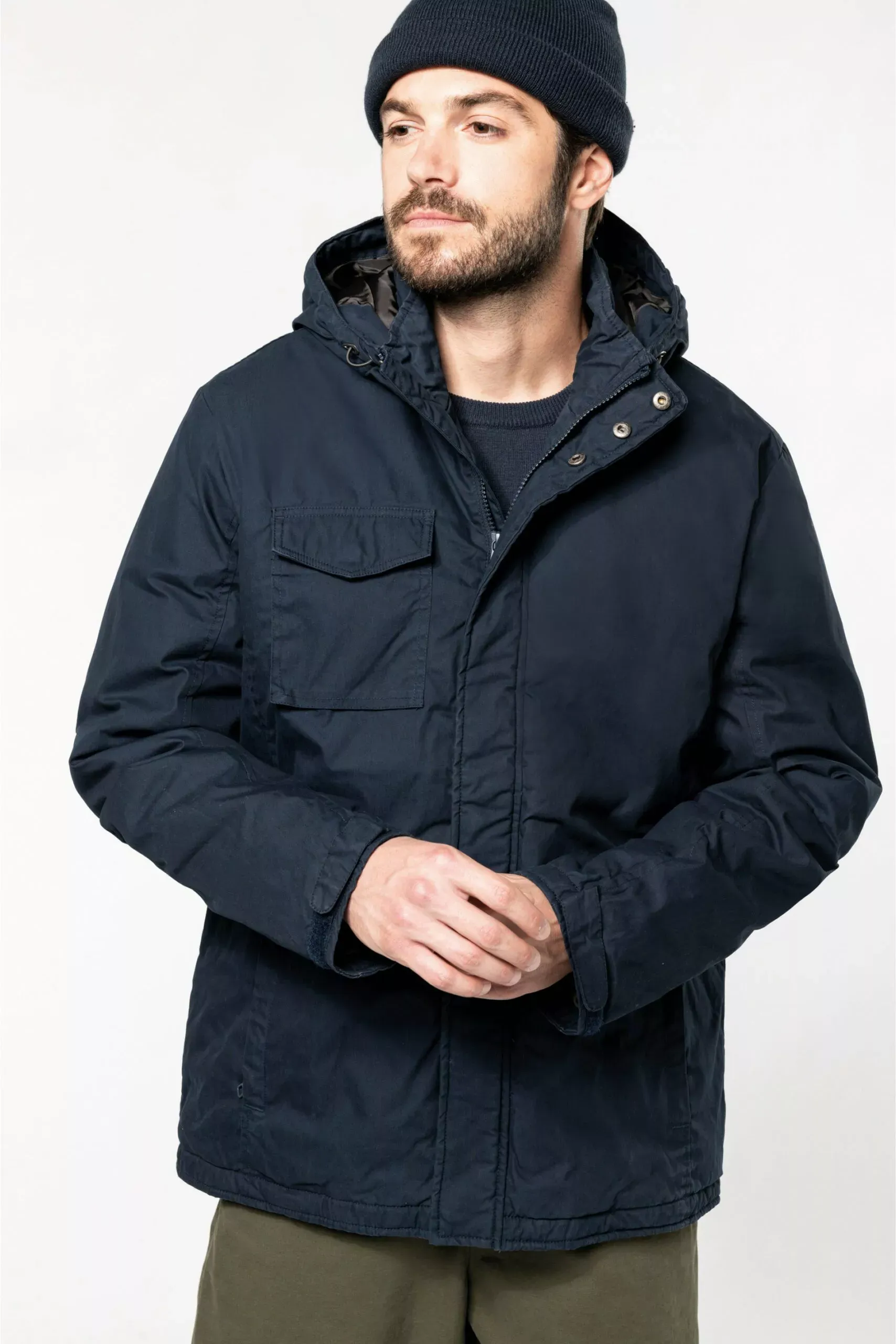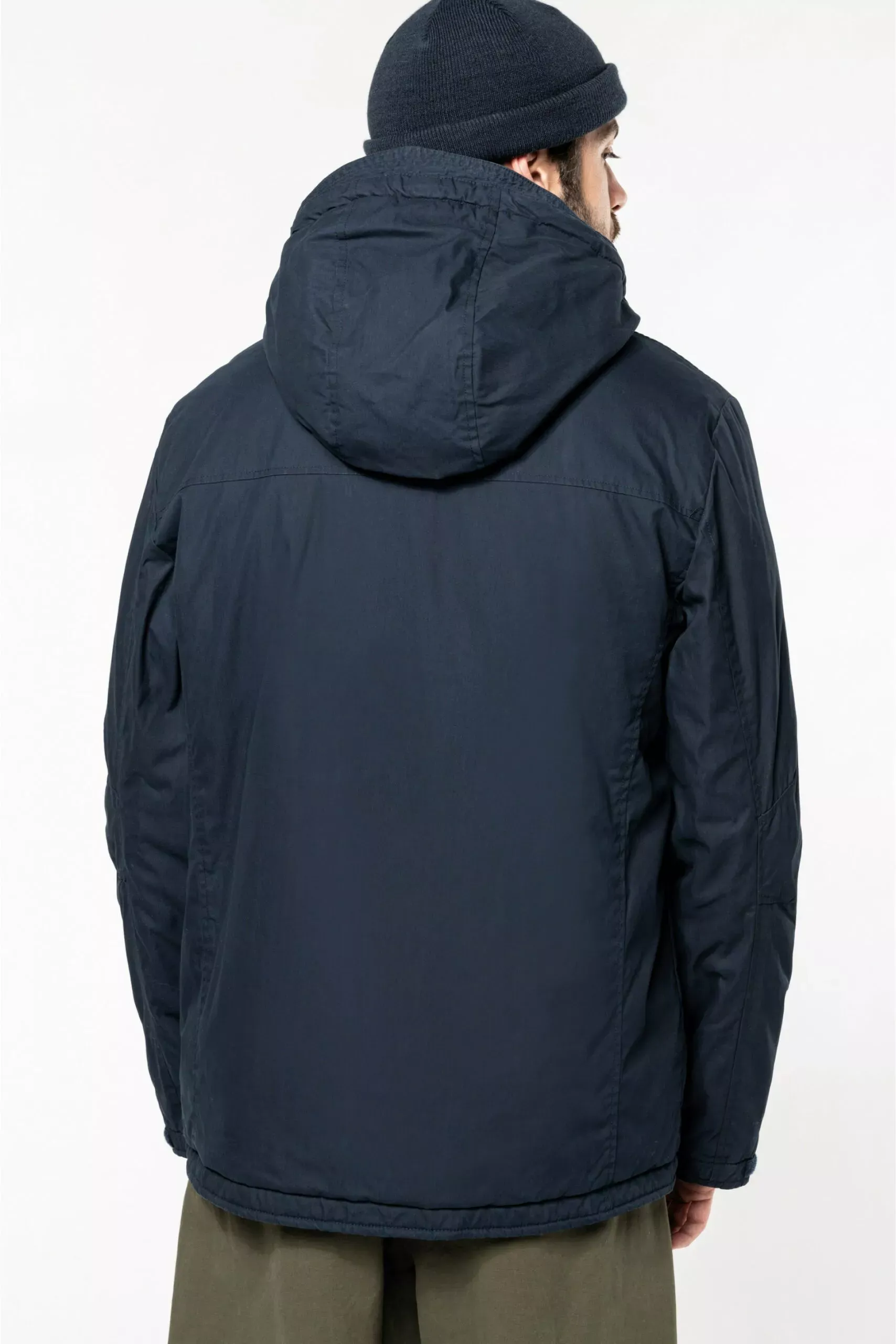 Le col haut et la capuche visière assure une protection maximale contre le froid.