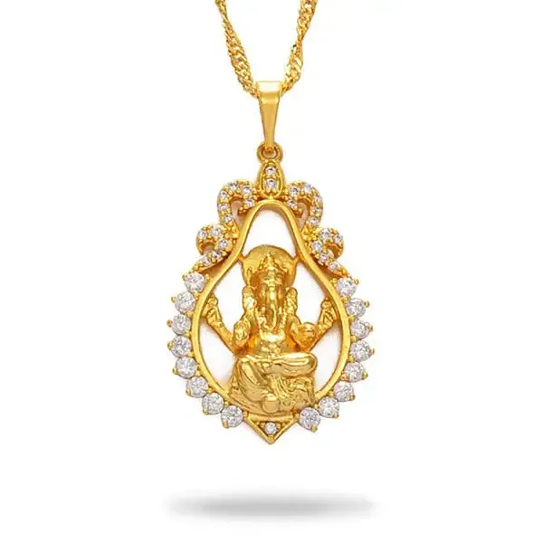 Le dieu hindou de la sagesse Ganesh protège contre les obstacles et est censé bénir ceux qui le prient. Gardez la divinité près de votre cœur avec ce magnifique Pendentif Ganesh en argent plaqué or au design unique.