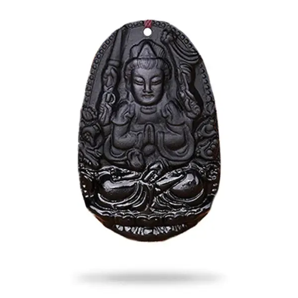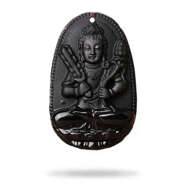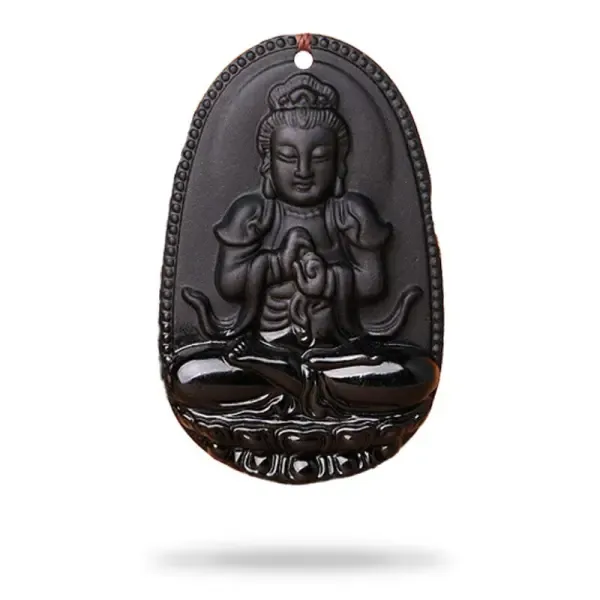 Magnifique Pendentif Bouddha en Obsidienne représentant la divinité Bouddhiste !