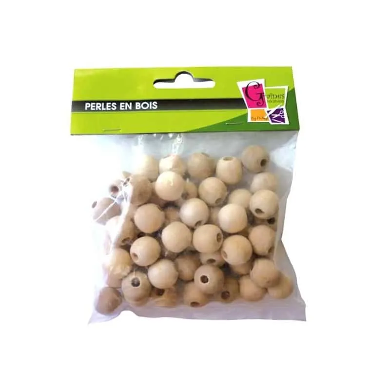 Sachet de 50 perles en bois. Existent avec différents diamètres.