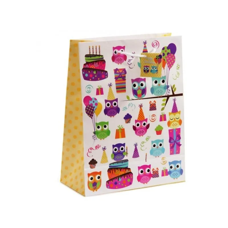 Sac cadeau chouette. Emballage pratique quand vous offrez un roman, un kit créatif… Lacets blancs pour les poignées.