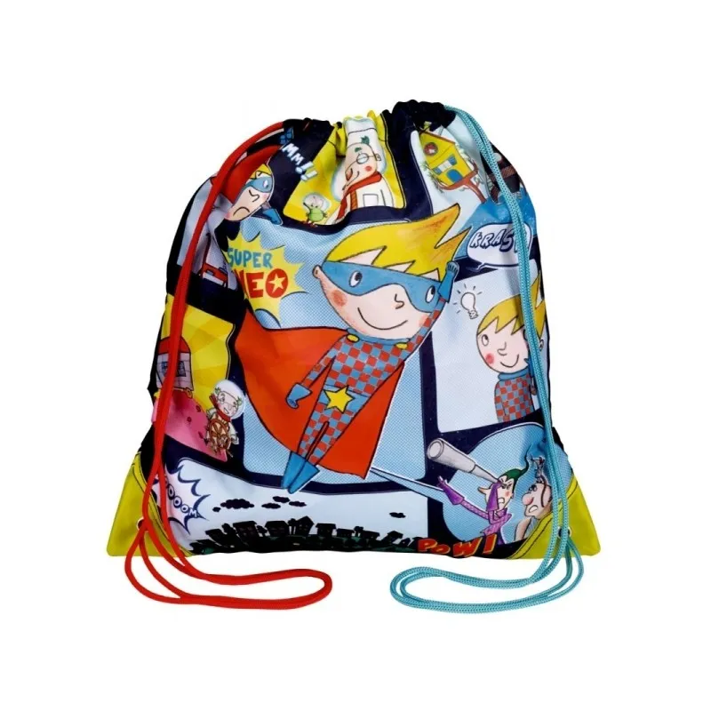 Les héros pourront ranger dans ce sac leur tenue de sport ou leurs petites affaires pour une soirée pyjama.Sac en nylon avec cordes coulissantes pour le fermer et le porter en sac à dos.