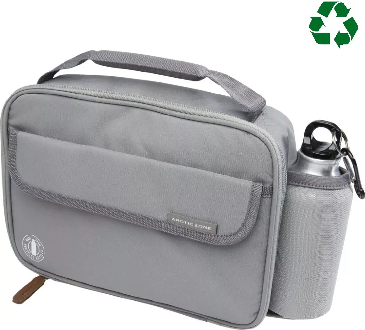 Ce sac isotherme est fabriqué à partir de bouteille en plastique recyclé, il est doté d’une isolation thermique haute densité. Ce sac isotherme comprend un grand compartiment isolé et zippé qui vous serviras à mettre votre lunchbox sans aucun soucis. Sur le coté on peut retrouver une poche en maille filet pour mettre votre gourde ou votre bouteille, et sur le dessus du sac une poignet rembourrée et une poche avant avec fermeture à scratch.