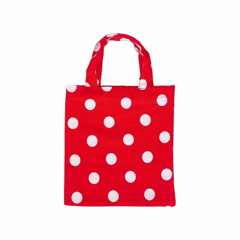 Joli et pratique pour offrir des goodies ou ranger des toutes petites choses, bracelets, barettes…. Sac en coton rouge à pois blancs avec anse.
