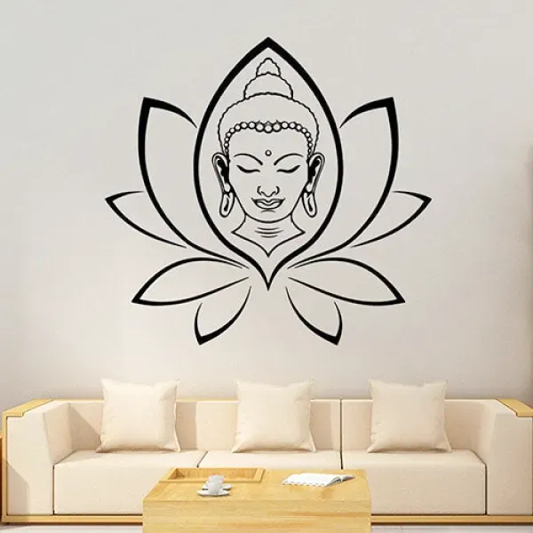 Découvrez ce joli Sticker Bouddha représentant la tête du Bouddha au milieu d’une Fleur de Lotus !