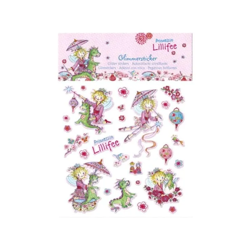 Le monde magique de Lilifée, en stikers. Autocollants poétiques et pailletés pour les petites filles qui aiment offrir de jolis dessins à leur maman. Planche avec 4 grands stickers de Lilifée, et des plus petits avec lampions, fleurs, oiseau, papillon…