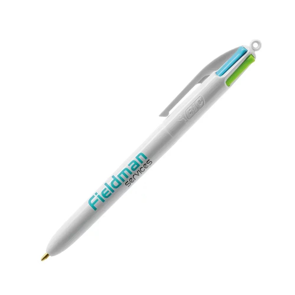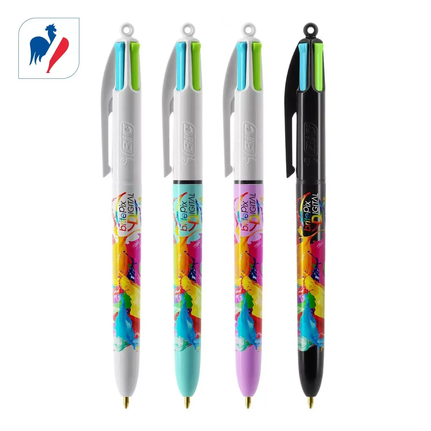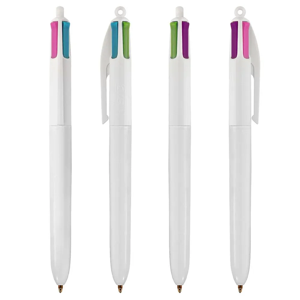 Stylo BIC 4 couleurs Fashion personnalisable Made in France. La version moderne du stylo-bille le plus emblématique se décline en quatre couleurs actuelles : turquoise, vert acide, violet profond et rose bonbon.
