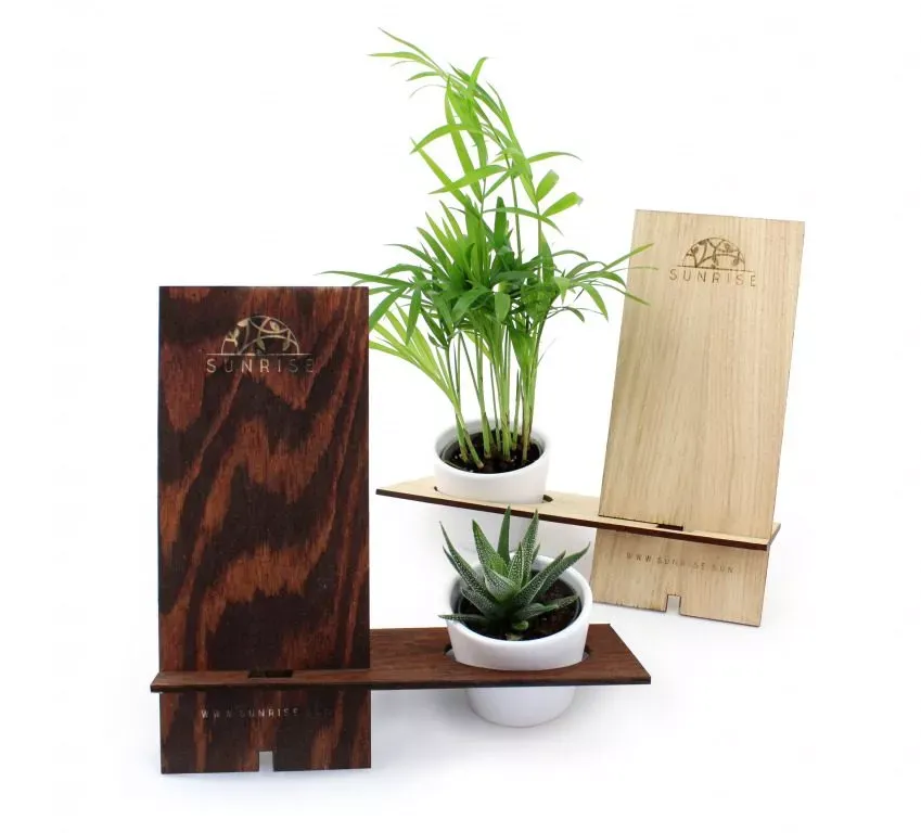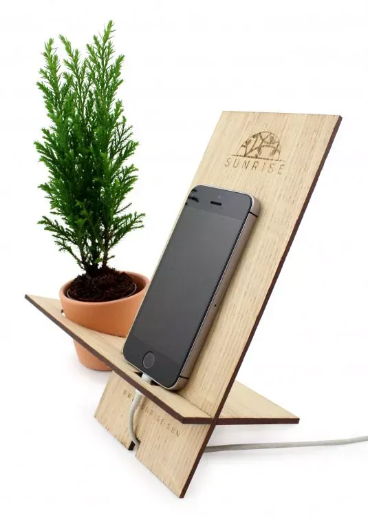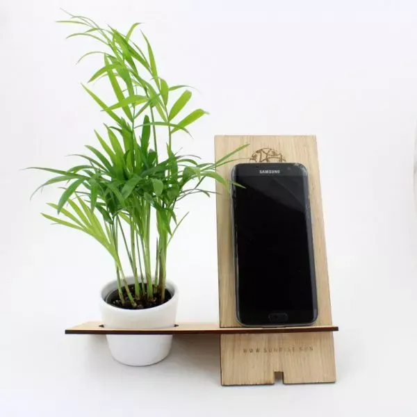 Support téléphone en bois est un support de téléphone accompagné des plante pour bureau.