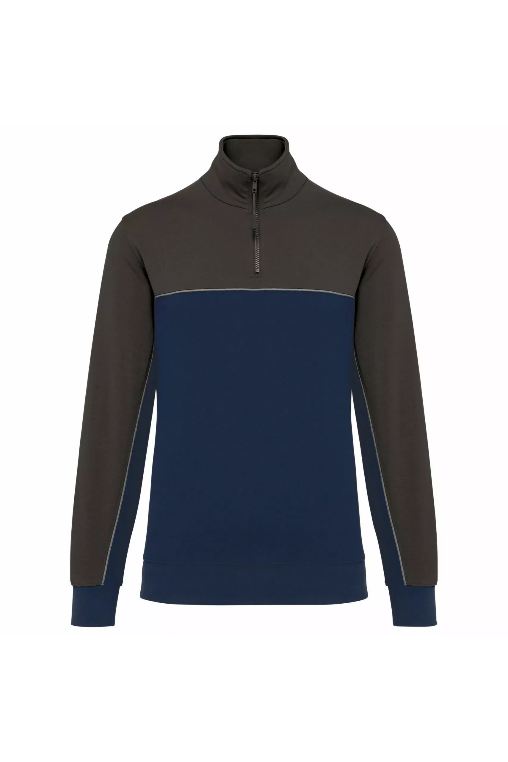 Ce Sweat-shirt écoresponsable a une coupe ajusté. Le col a un zip plastique et tire-zip ton sur ton recyclé.
