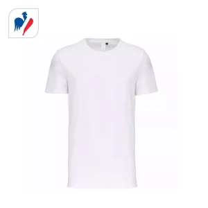 T-shirt blanc basique pour homme avec un col rond 100% coton.