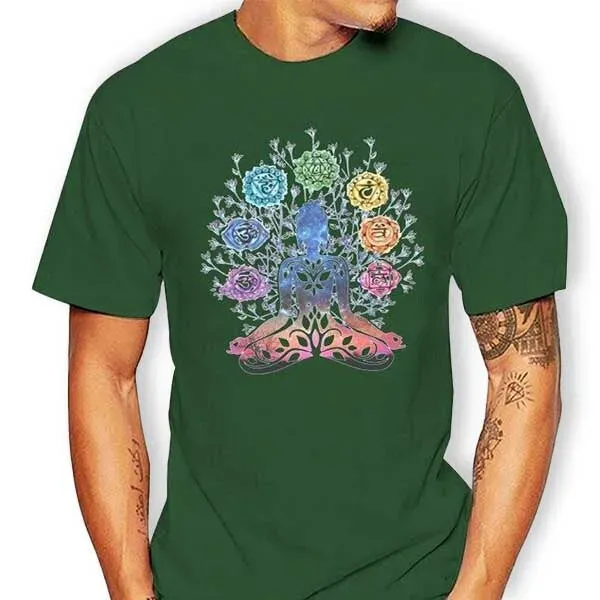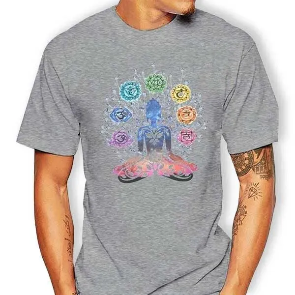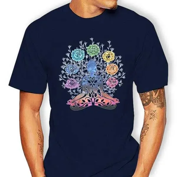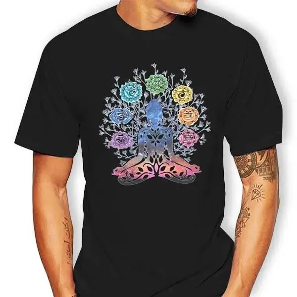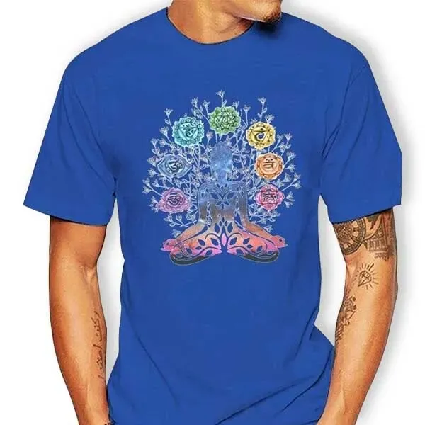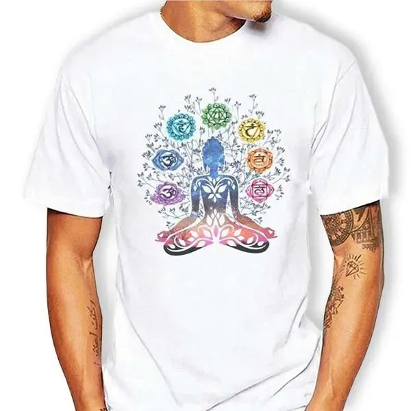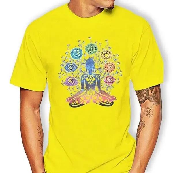 On y retrouve Bouddha en pleine méditation ainsi que les 7 chakras disposés tout autour de lui. Portez ce t-shirt et il se connectera avec tous vos chakras. Il sera idéal pour la méditation ou le Yoga !