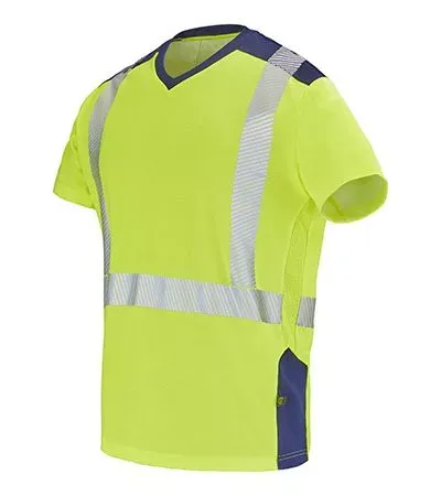 T-shirt haute visibilité avec bande de propreté au niveau de l’encolure en V.