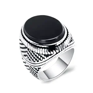 Bague Bouddha Homme avec Pierre d’Onyx Noir (Acier)